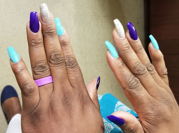 Purple and teal awareness nails