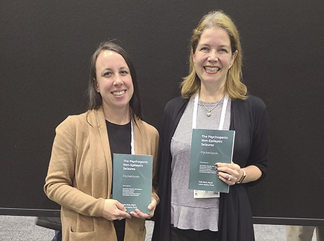 Dr. Julia Doss and Dr. Lorna Myers with the Psychogenic Non-epileptic Seizures Pocketbook